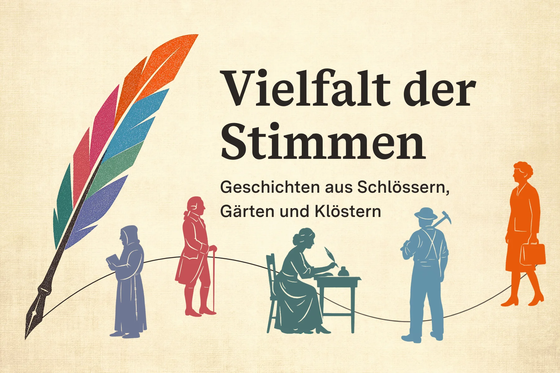 Neben Kurfürsten, Königinnen und Äbten verbinden sich die Lebenswege ganz unterschiedlicher Persönlichkeiten mit den Monumenten: Händler, Hebammen, Handwerker, Künstlerinnen und Klosterschüler – ihre Geschichten werden selten erzählt, verdienen es aber gehört zu werden. Mit den Thementouren „Vielfalt der Stimmen. Geschichten aus Schlössern, Gärten und Klöstern“ kommen Persönlichkeiten zu Wort, die neue Perspektiven auf das Leben und den Alltag in den vergangenen Jahrhunderten eröffnen.
